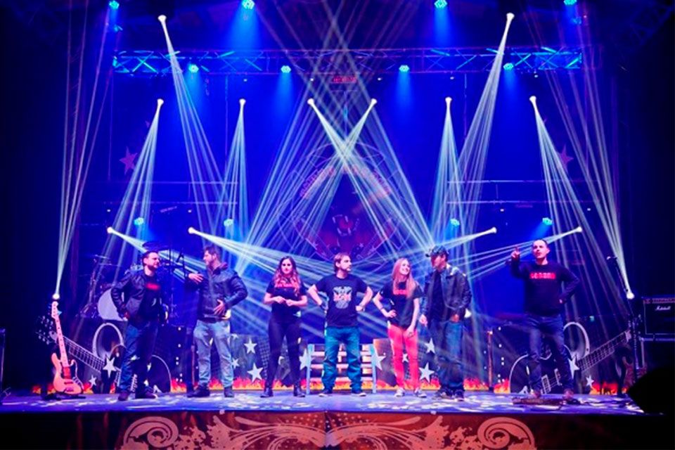 Orquesta de 6 componentes: Batería, bajo, guitarra, piano /teclados, voz masculina y voz femenina.